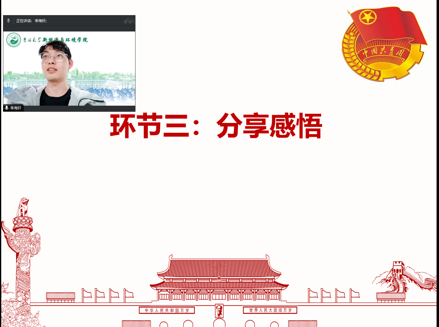 在分享感悟环节,团支部成员尚亚杰有感而发地说:“我的专业研究方向与水资源保护和污染治理息息相关,我将用我的专业知识为水资源保护出一份力!”