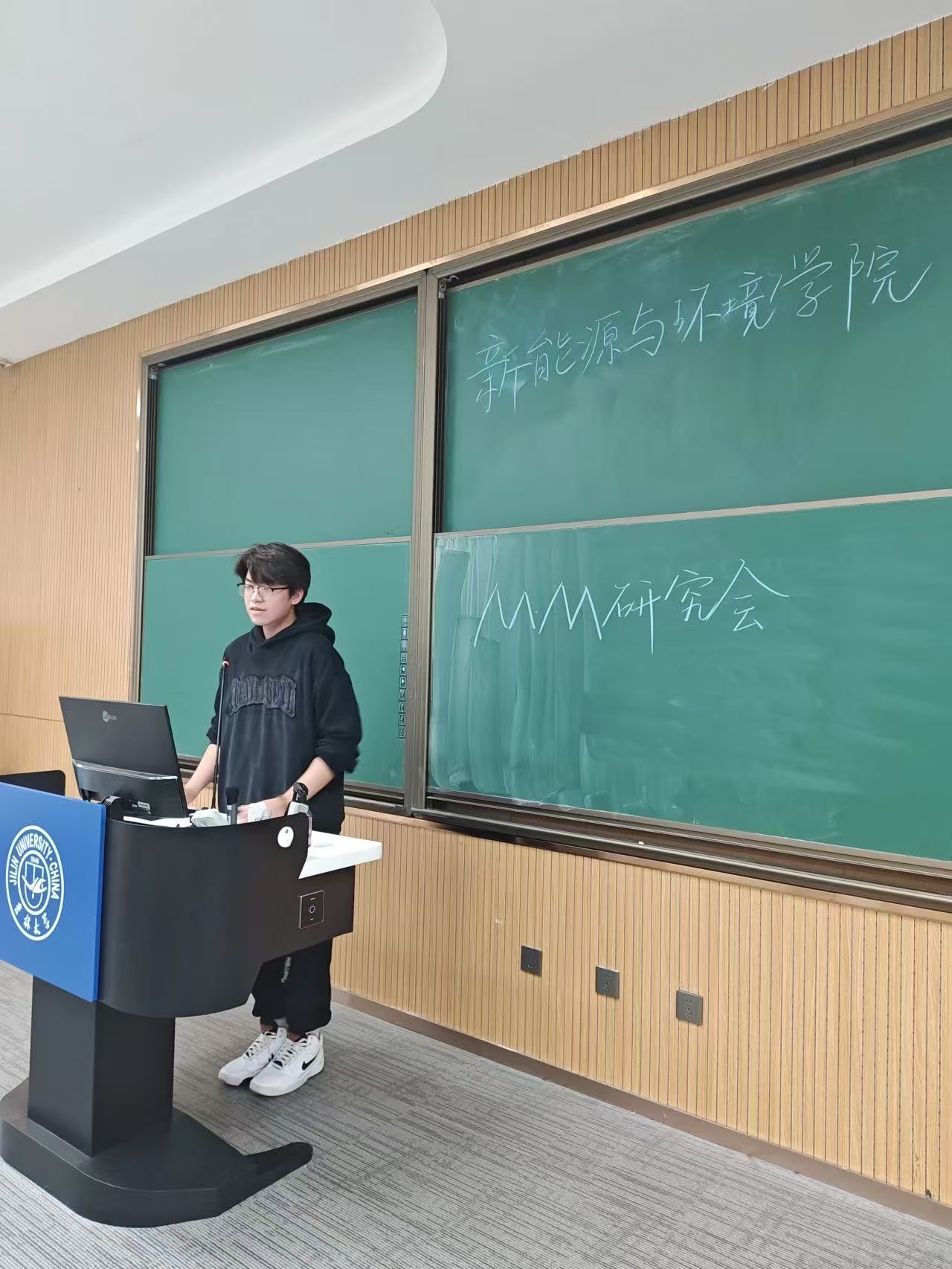 会议最后,胡尊淇同学对会议进行总结,感叹当下并展望未来,在坚持绿色发展理念的同时积极推进生态修复和环境保护工程,不断改善生态环境质量,推动经济发展向绿色、低碳、循环方向转变。