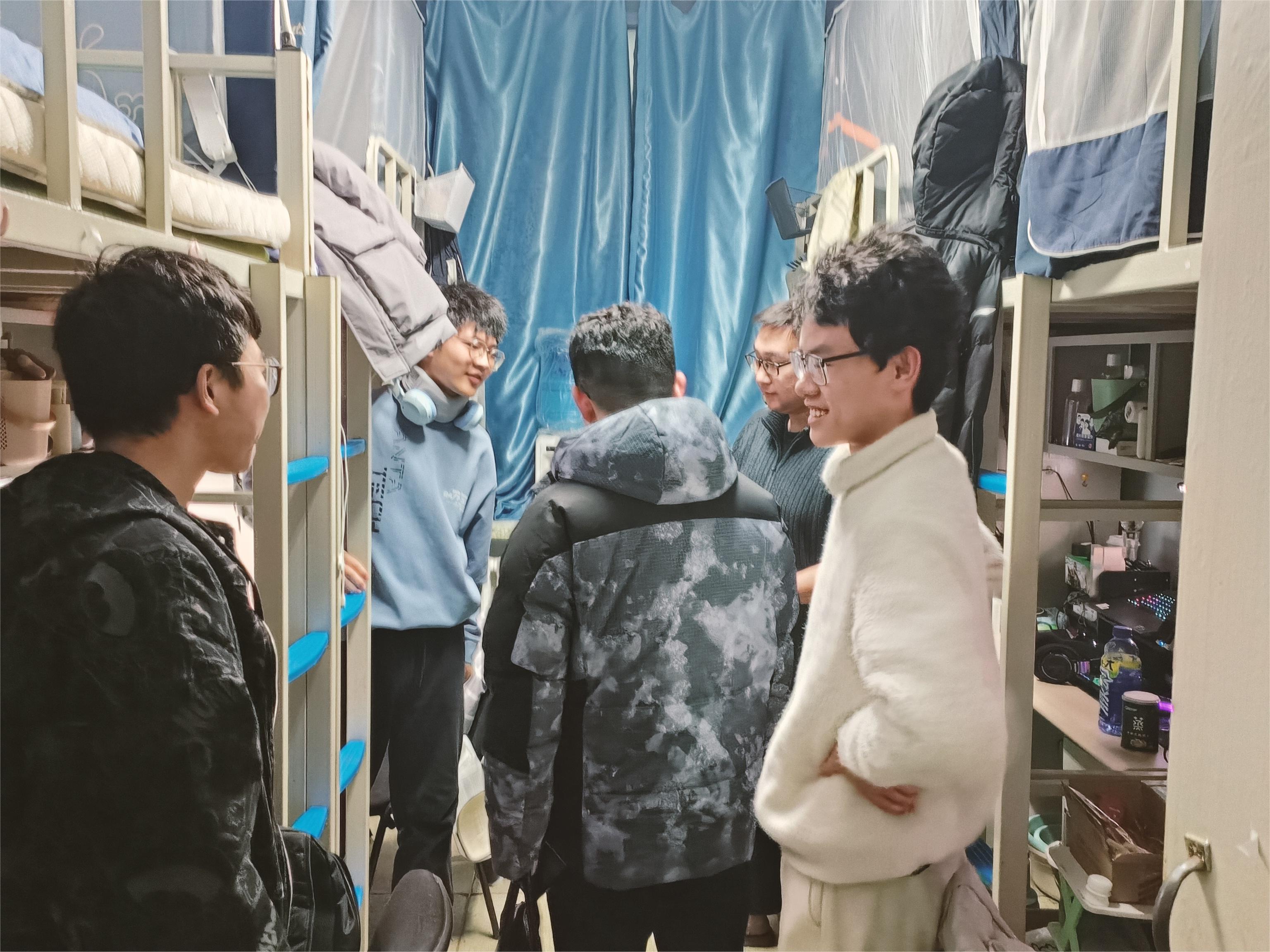 开学第一周内,bat365官网登录入口党委副书记吴哲带领学生工作办公室的全体辅导员深入寝室,对两个校区四个公寓楼的247间寝室进行走访,达到本科学生寝室全覆盖。