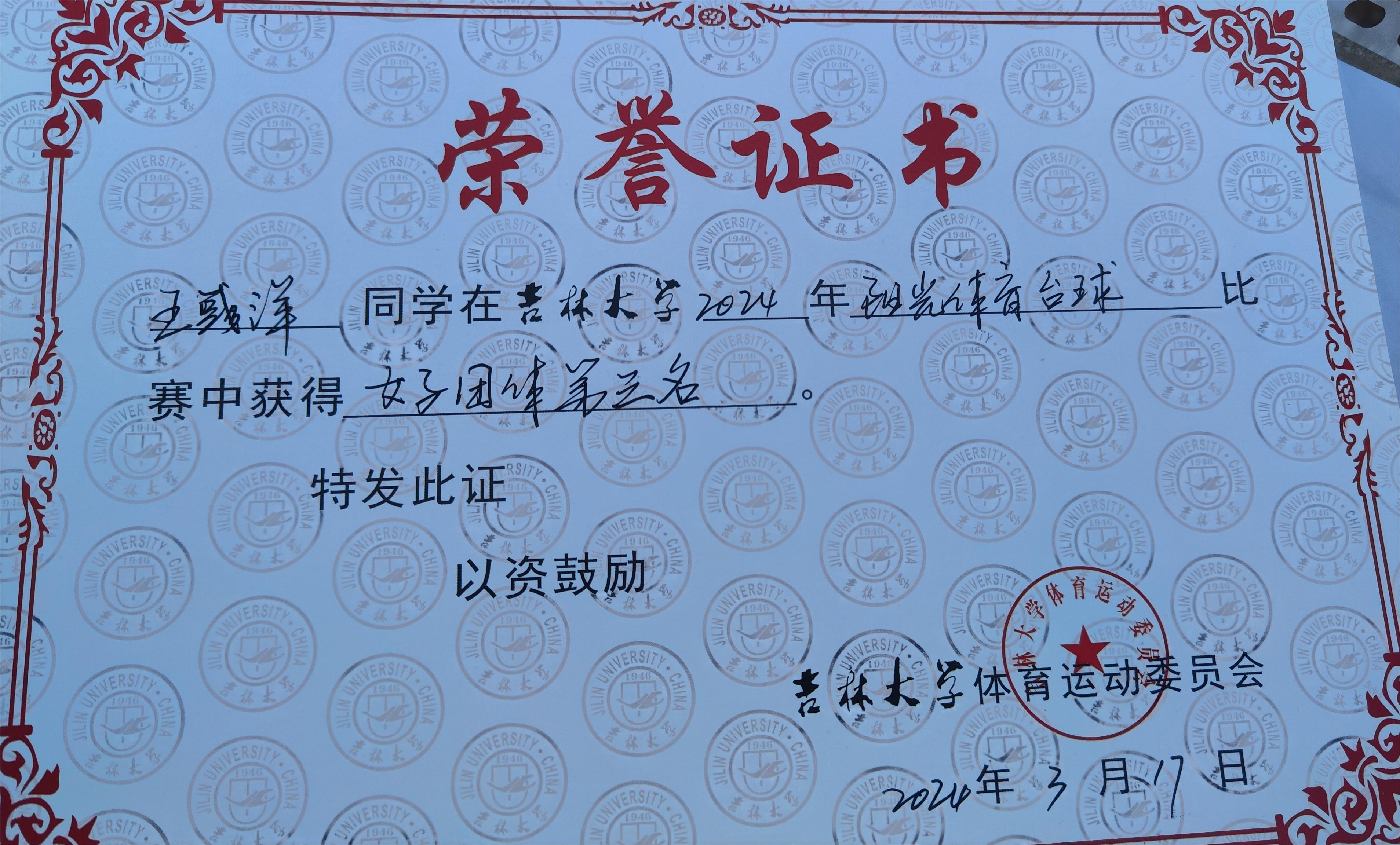 本周末我校于南岭校区体育馆举行了吉林大学第二十四届台球比赛,我院荣获男子团体赛和女子团体赛第三名的好成绩,黄彬同学获得男子台球单打第五名的好成绩。这也是继男子五人制足球比赛和男子乒乓球团体比赛分别取得四强好成绩后,我院学子在阳光体育团体赛事活动中再创佳绩!