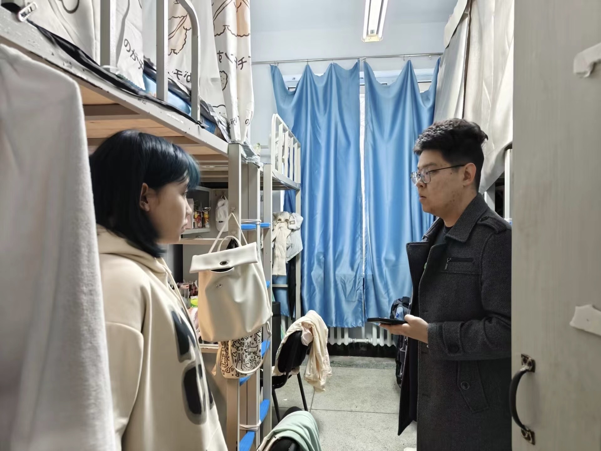 4月19日,2020级辅导员霍美汐老师对南区南苑一、南苑二公寓18间寝室进行检查,本次检查重点为寝室卫生,除部分寝室个别位置较为脏乱外,大部分寝室卫生状态良好,没有发现违章电器。