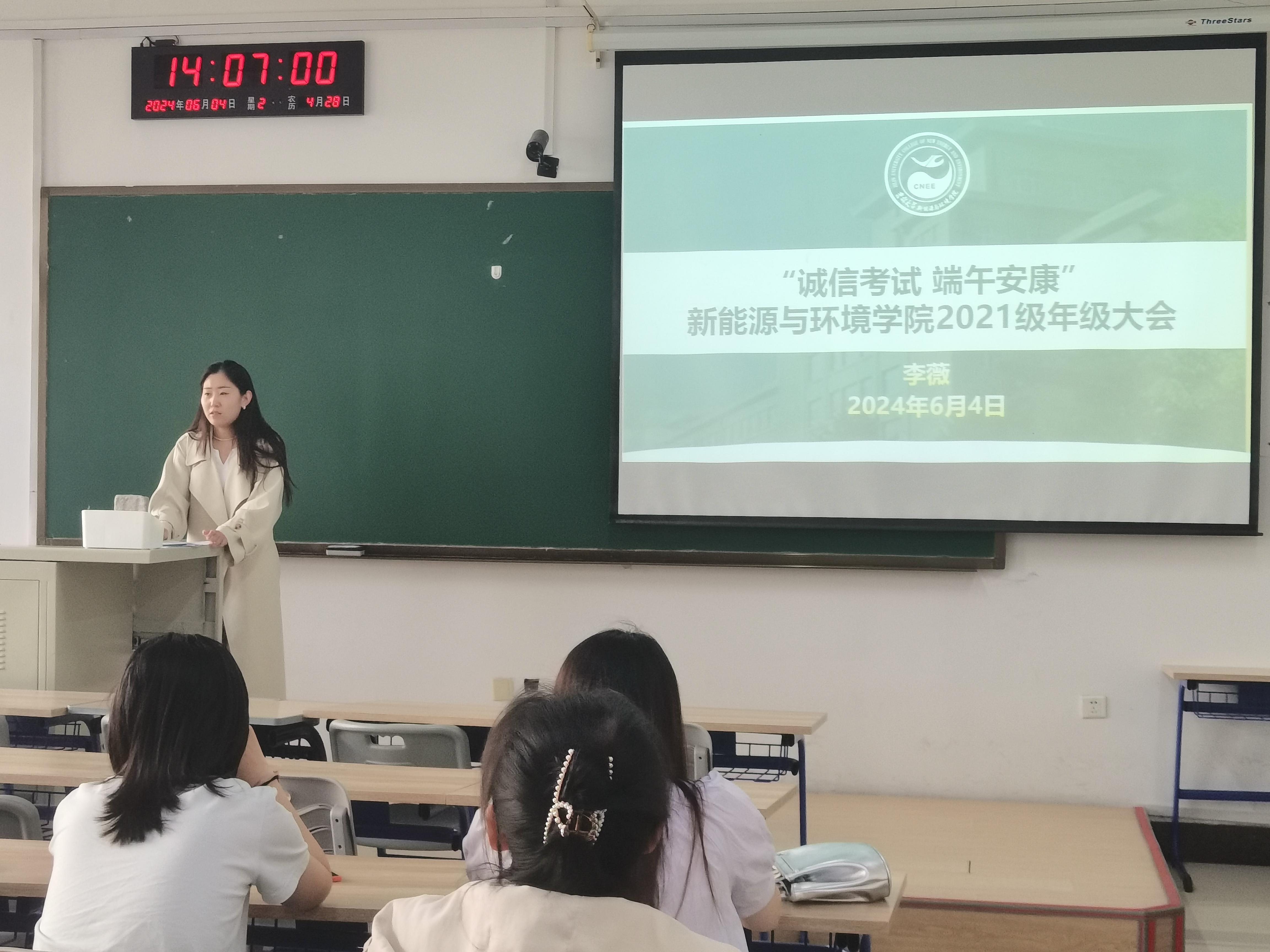 为弘扬诚信精神,增强学生安全意识,迎接即将到来的端午节,确保学生在校及出行安全,bat365官网登录入口学生工作办公室全体辅导员于2024年6月5日-6日先后组织各年级同学开展了“诚信规范,安康端午”主题年级大会。