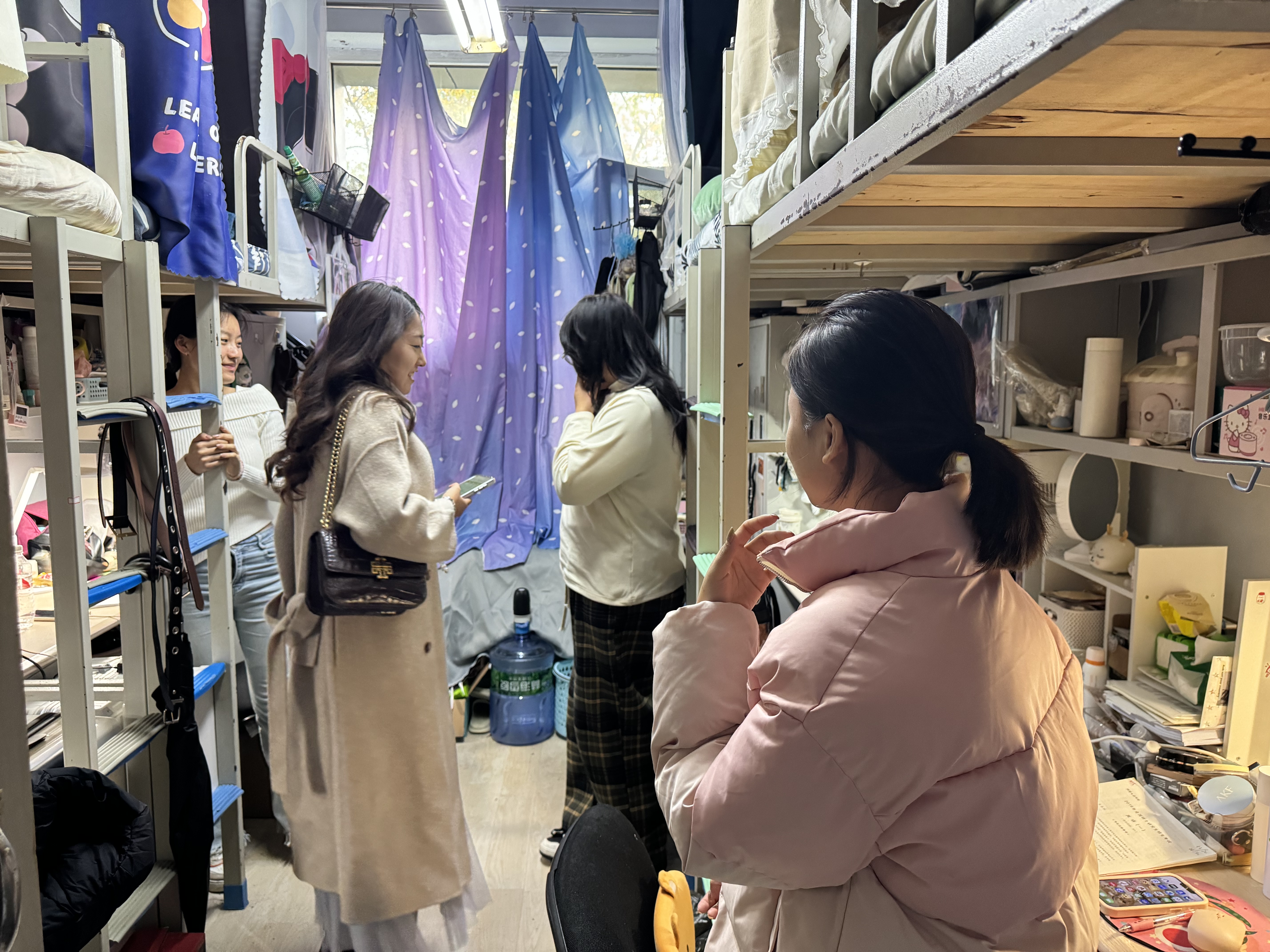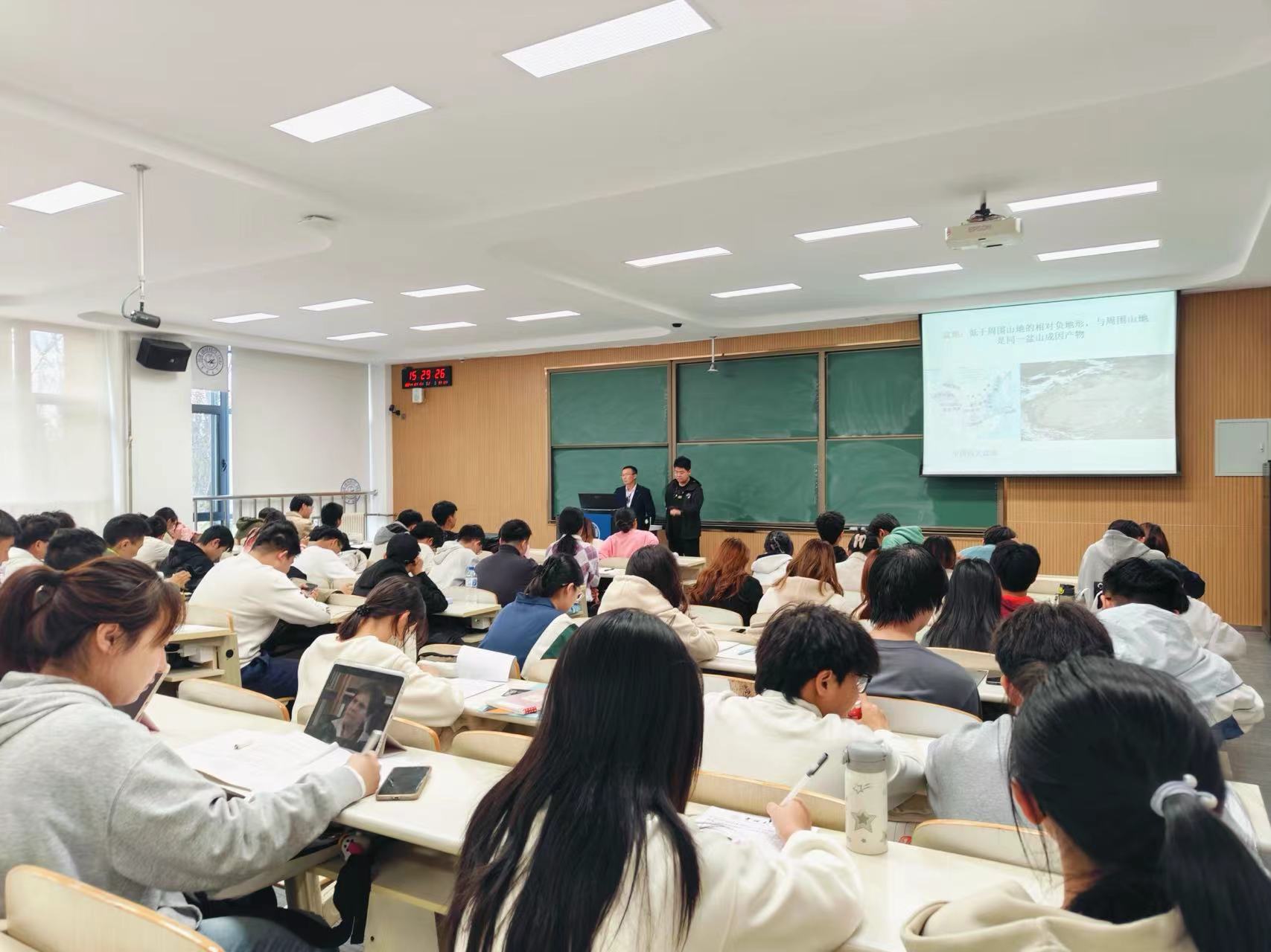 10月15日,2023级辅导员姜岳彤老师进入《地球科学概论》课,重点检查前排就座情况,本科课程共2人迟到,1人请假。10月17日,姜老师进入中心校区南苑一公寓寝室,检查宿舍卫生情况,并了解寝室温度,记录并上报寝室低温情况。