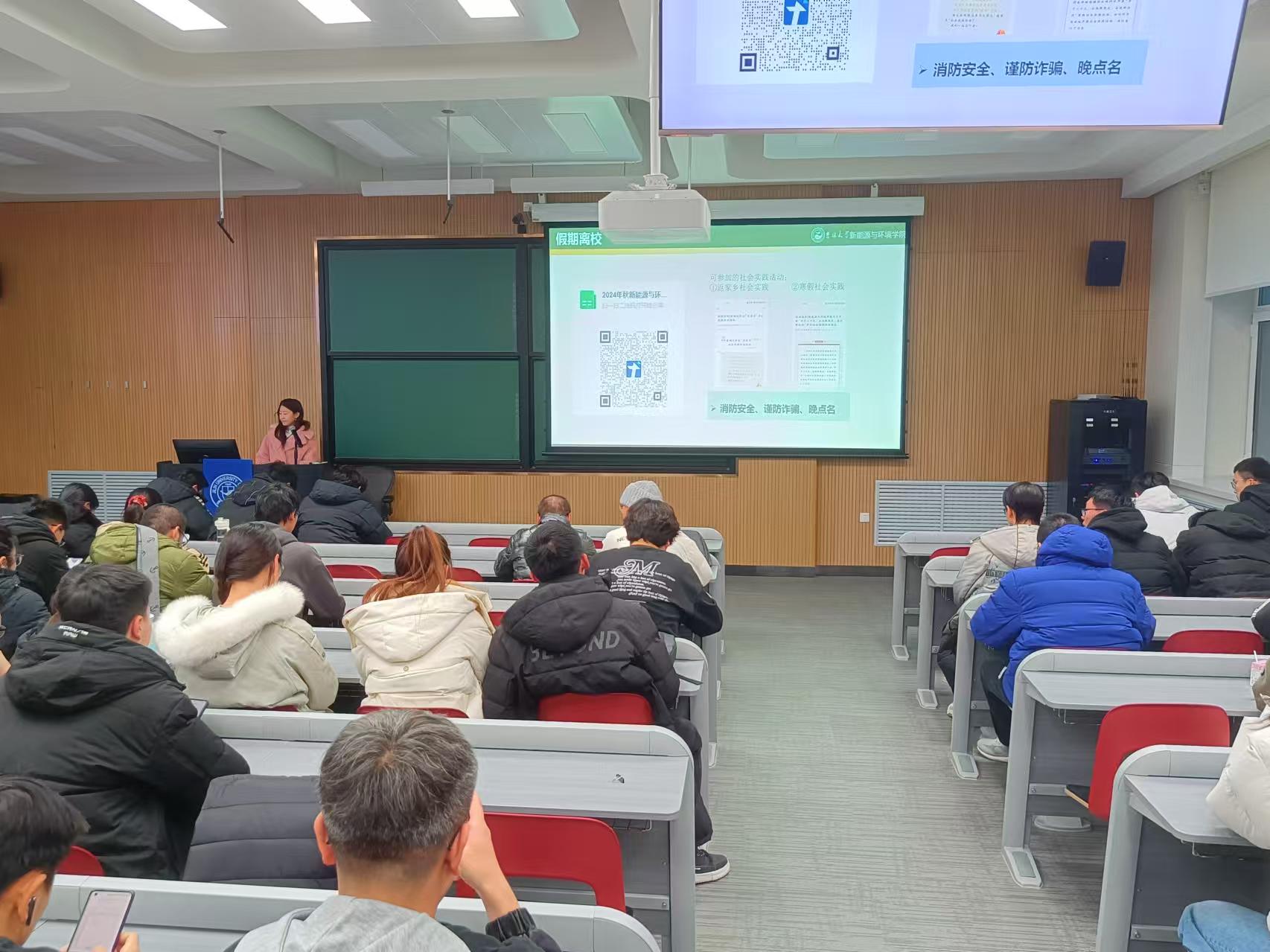 为做好学生假期安全教育、加强学风建设、规范日常行为,2024年12月11日-17日,bat365官网登录入口学生工作办公室全体辅导员老师先后组织各年级同学开展了“诚信考试,安全归家”主题年级大会。
