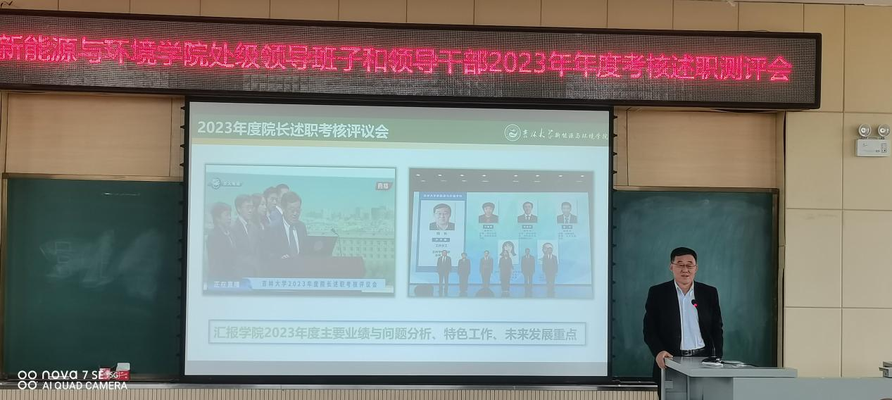 院长许天福首先代表学院领导班子对2023年的主要工作进行了总结,梳理了过去一年来学院取得的主要成绩,汇报了各项重点工作的完成情况。随后,许天福进行个人述职。他详细汇报了人才培养、科学研究和师资队伍建设等方面工作的亮点特色,尤其在教学团队与科研团队建设方面成效显著。他强调,学院将不断加强产教融合育人、人才培养引育力度以及产学研合作,促进成果转化应用,全面推进学院各项事业快速发展。