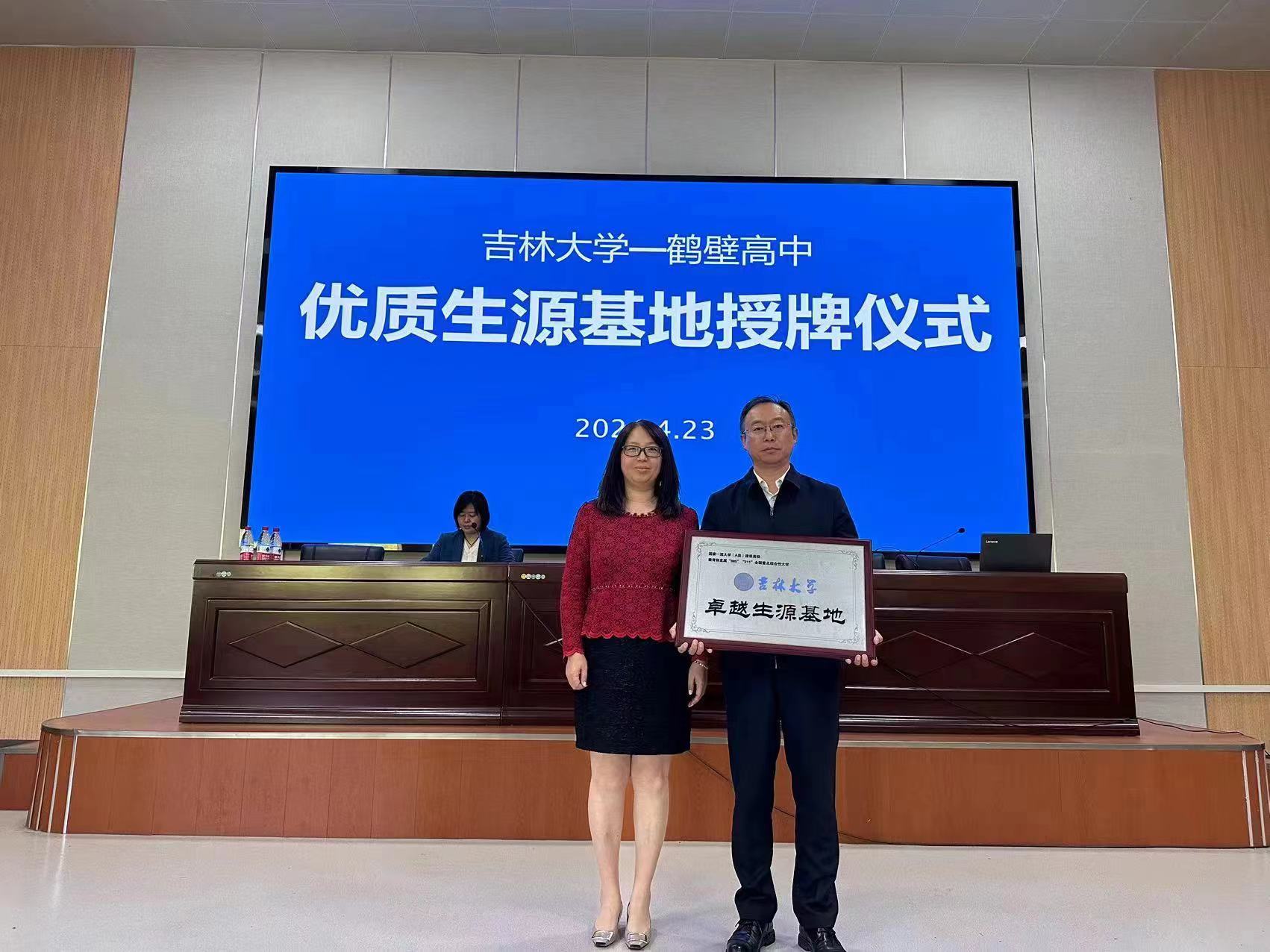 此次活动共建了5个生源基地,授牌“卓越生源基地”1个,“优秀生源基地”4个,有效搭建了“大中”协助平台。鹤壁高中始建于1958年,是河南省24所“重点中学”之一,中国顶级中学100强;2019年4月鹤壁高中成为“吉林大学优秀生源基地”。近三年,鹤壁高中共有39名学生考入我校。应鹤壁高中校领导邀请,4月23日,精讲团来到该校,进行“吉林大学卓越生源基地”授牌和招生宣讲。郑州中学、商丘市民权县高级中学、周口市扶沟县高级中学、周口市商水县第二中学近年均有多名优秀学子考入我校,经河南校友会介绍、bat365官网登录入口积极对接,4所学校与我校达成共建优秀生源基地意愿,本次招生宣讲活动中,汪祥松书记、李峰院长、吴哲书记分别带队前往4所学校进行“吉林大学优秀生源基地”授牌,并与校领导交流,希望以此为契机,建立沟通平台,加深交流合作,共同为“为党育人、为国育才”做出更大的贡献。