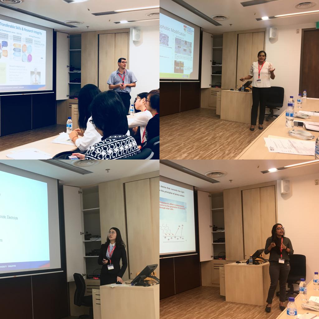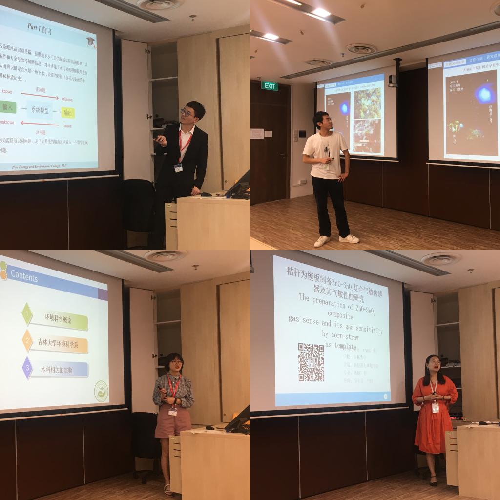 双方学生学术研讨会环节,Dilhara、Bhumika和陈真三位南洋理工大学博士生详细介绍了他们的研究方向及研究成果,如膜技术进行咸水淡化的过程、新能源特别是太阳能电池方面的研究等。我院的四位硕士生吴红君、龚雨、白玉堃和魏子麟同学分别介绍了自己的研究成果,包括大气颗粒物的采集与污染物测定、仿生学在环境中的应用、卡尔曼滤波法在地下水污染源反演识别中的应用,还有可燃冰和海底冷泉形成的相关知识。
