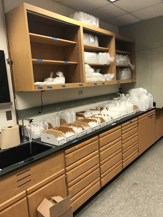 在到达莱斯大学后,访学团就在吕聪老师的带领下参观了环境工程实验室、物理化学实验室、电化学实验室、微生物实验室以及chemical store,其中的chemical store令人眼前一亮,学生可以到这里来购买所需药品试剂,整齐的药品摆放、方便的的购买方式使其成为莱斯大学实验室中独特的风景。