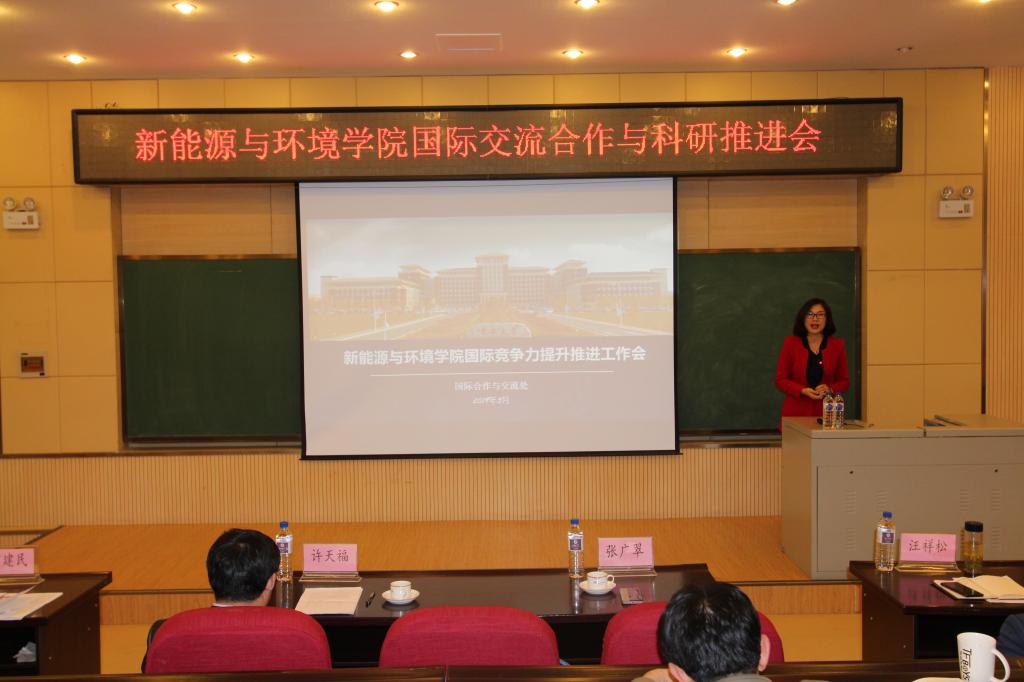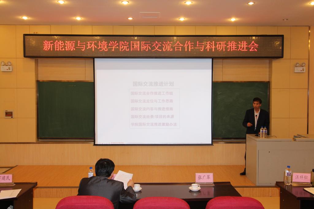 推进会由学院党委书记汪祥松主持。首先,张广翠处长做了“bat365官网登录入口国际竞争力提升推进工作”的报告,报告首先介绍了“世界一流大学”的国际化因素、吉林大学国际化水平现状、bat365官网登录入口国际化战略目标及现状,并为新能源学院未来国际化发展工作提出了宝贵建议。张处长还对关于bat365官网登录入口学生国际竞争力提升计划进行了深入细致的分析并强调了关于学生学业规划的重要性。bat365官网登录入口负责外事工作的董军副院长向参会教师介绍了学院国际交流的推进计划、教师开展国际交流合作的经费来源、以及学院对国际交流工作推进的激励方法。同时,董军副院长对2018年的科研工作进行了总结并提出今年的推进计划。