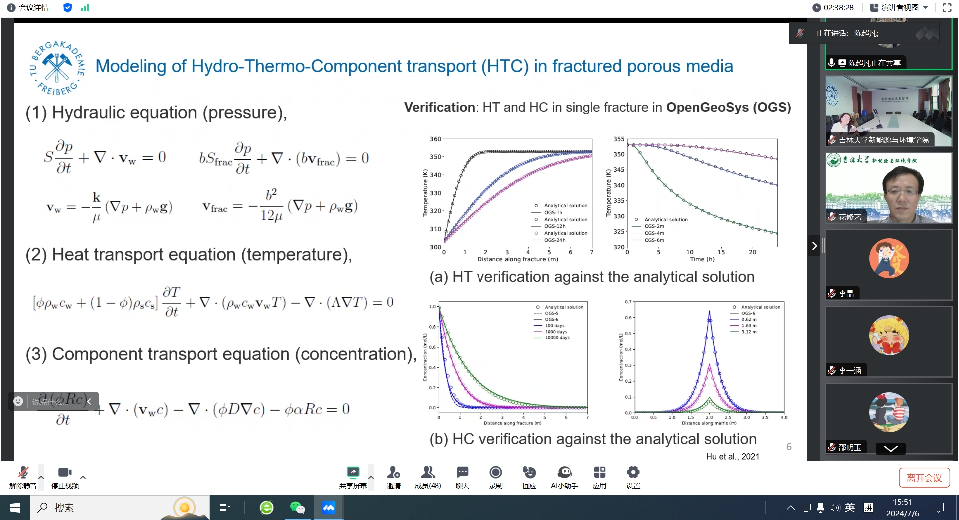 为庆祝吉林大学研究生院建院四十周年,丰富学院学术交流活动的多样性,2024年7月6日,bat365官网登录入口、石油化工污染场地控制与修复技术国家地方联合工程实验室、吉林大学地下水资源与环境教育部重点实验室共同举办了“2024年水资源与环境国际青年学者在线论坛”。6位来自奥克兰大学、弗莱贝格工业大学、美国达索系统、中国海洋大学、中国科学院地球化学研究所、吉林大学等国内外知名高校和科研院所的青年学者通过线上学术报告分享的形式呈现了一场丰富的学术盛宴,吸引了近百位师生线上观看交流。