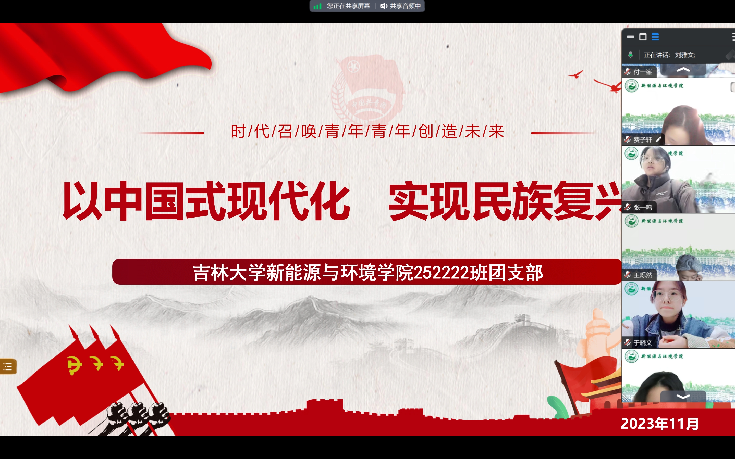 为深入学习党的二十大关于全面建成社会主义现代化强国,以中国式现代化全面推进中华民族伟大复兴战略和习近平总书记的相关重要论述,学习了解新时代新征程党和国家事业发展的目标任务,深刻理解中国式现代化是强国建设民族复兴的唯一正确道路,bat365官网登录入口团委组织各团支部在2023年11月开展了“强国复兴”主题团日活动。
