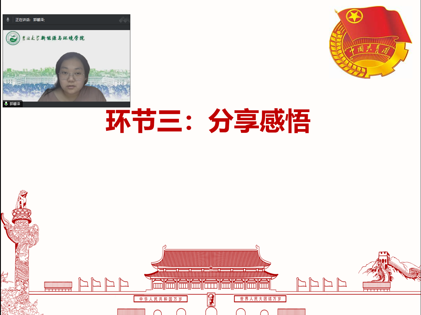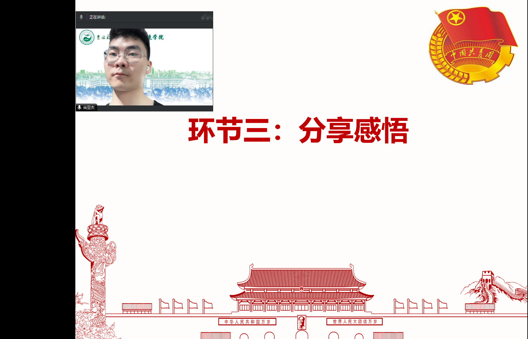 在分享感悟环节,团支部成员尚亚杰有感而发地说:“我的专业研究方向与水资源保护和污染治理息息相关,我将用我的专业知识为水资源保护出一份力!”