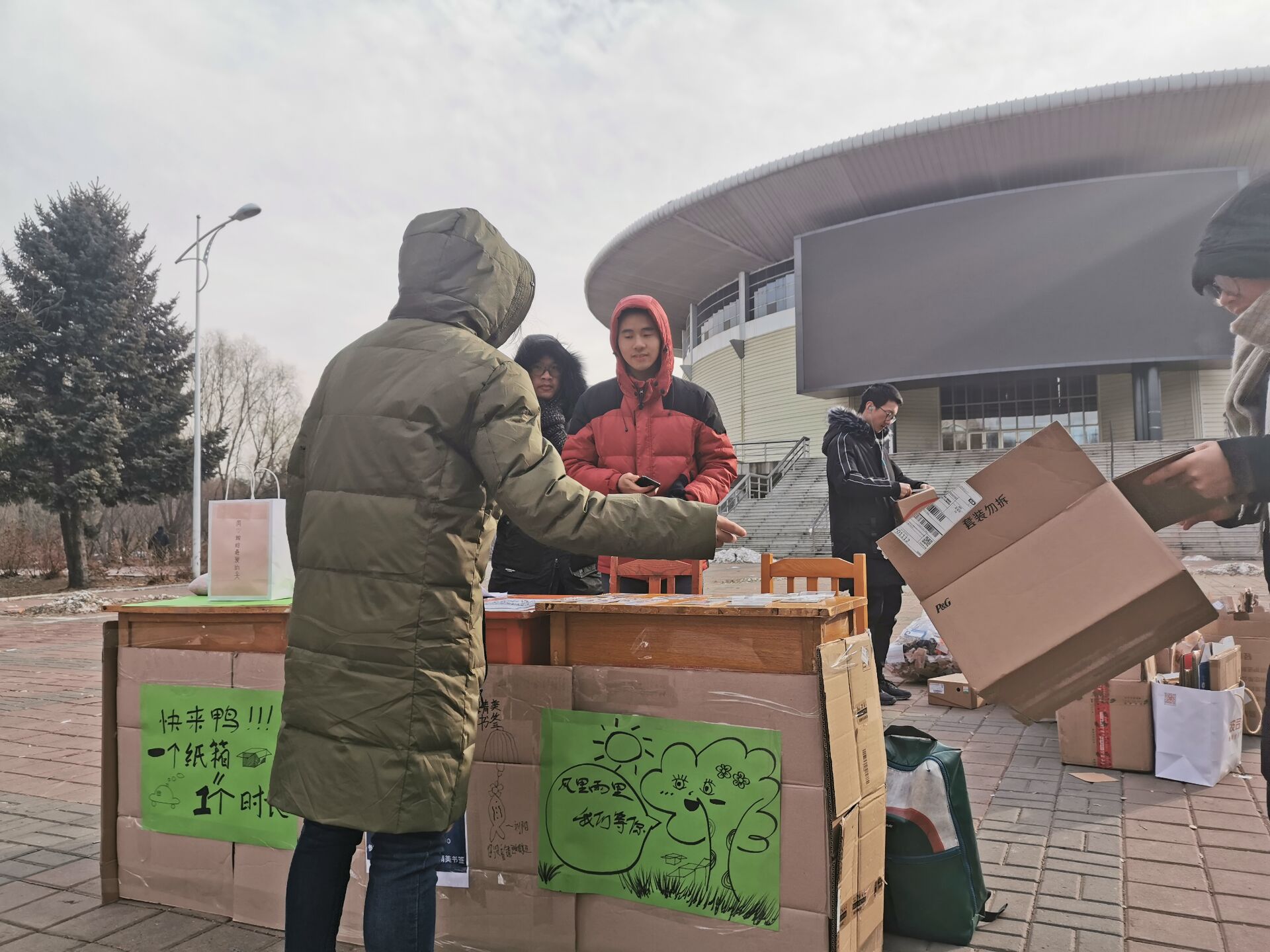 同时,在后续工作中,志愿者将会负责将纸箱交由晨曦组织进行捐赠,或将纸箱运送至附近的快递纸箱回收处回收,换取的资金也将用于以后的各项志愿者活动,环环相扣,绿色循环。