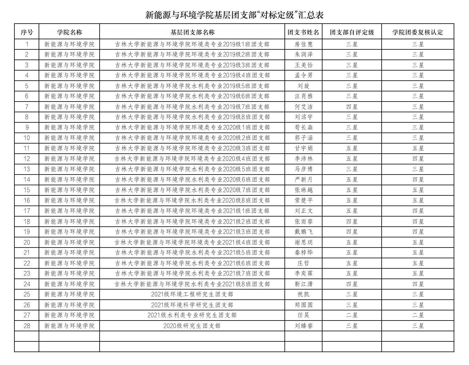 依照上级团委相关要求,院团委统筹安排本次“对标定级”工作,将“对标定级”开展情况作为团支部年度述职评议内容。本年度,学院各团支部能够在上级团委的指导下组织开展各项活动,在社会实践参与,志愿服务参与,学习作风建设上,各团支部都起到了良好的模范带头作用,充分认识到团员工作的重要性,把团员工作做实做细。根据“对标定级”情况,院团委将对4星以上团支部及团支书表彰,进一步开展下一年度专项工作部署,推动各团支部对标对表、整改提升。