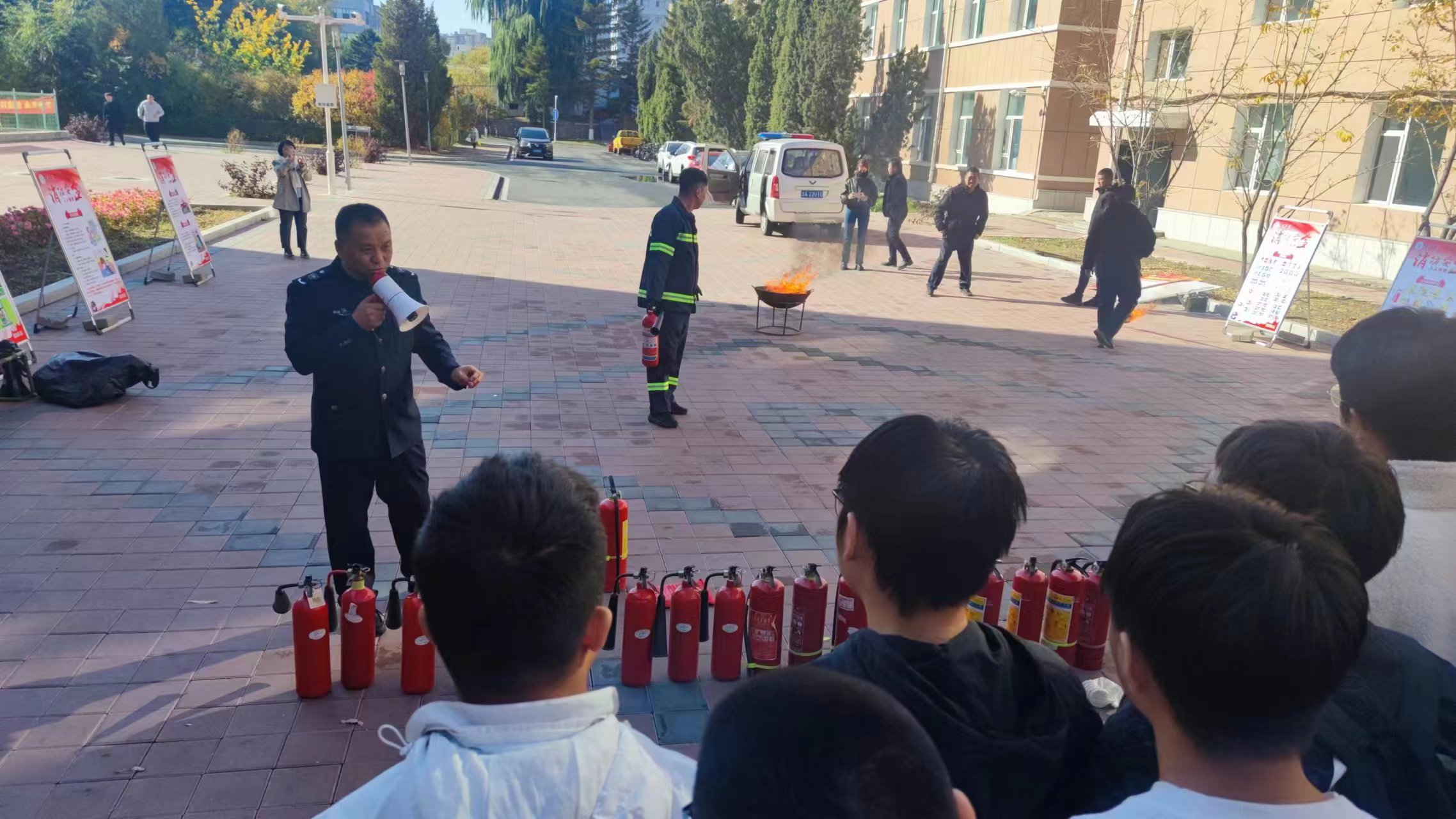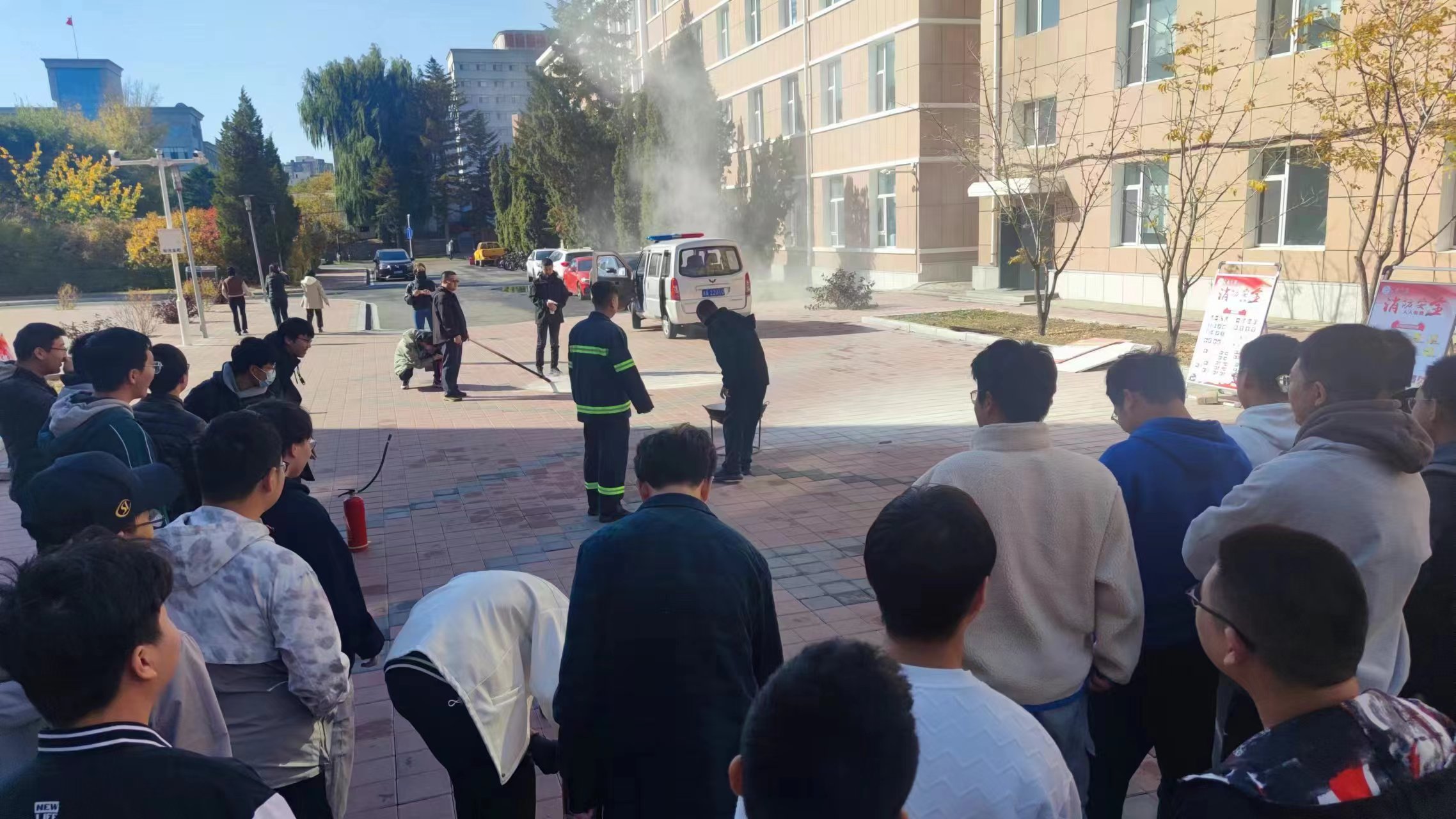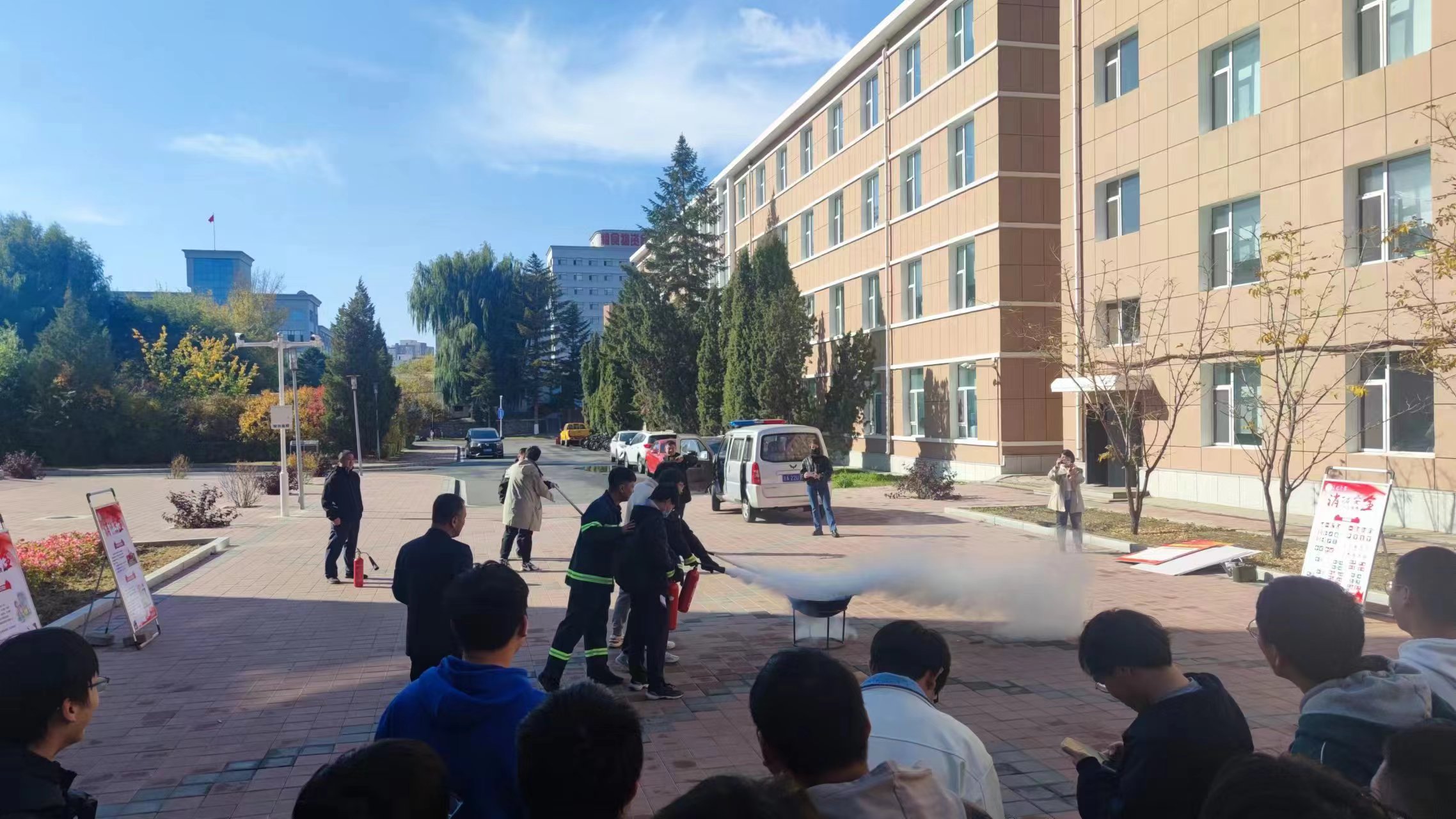 警报响起后,同学们在楼内志愿者的引导下撤离所在楼层。在撤离过程中,同学们井然有序,不争不抢,快速疏散。到达指定疏散地点后,同学们在专业人员的指挥下统一行动,在安全距离范围内等待消防人员处理“火情”。火警停止后,参与演练的全体同学共同学习了在火灾中快速逃生的方法。在专业人员的讲解下,同学们对在火灾中如何快速逃生,面对不同火势应该如何应对,遇到突发情况应该怎样应急处置有了更进一步的了解。演练过程中,同学们认真严肃,积极配合,行动迅速,用火防火的安全意识进一步提升,疏散演练取得了圆满成功。