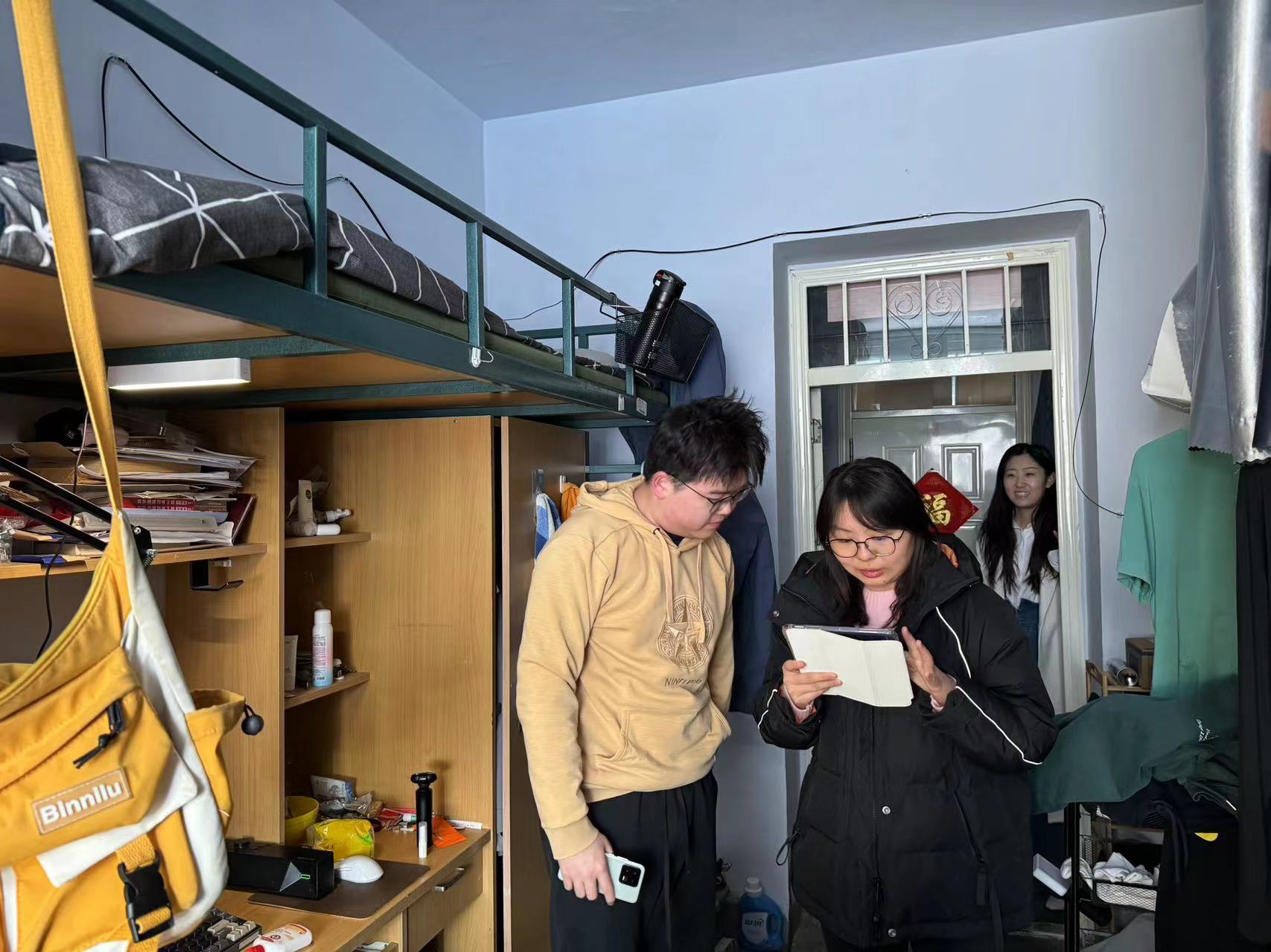 本次寝室走访工作主要从两方面开展。一方面是通过与学生面对面交流了解学生寒假情况,叮嘱同学们在校园内、公共区域等注意自身安全,关注学生们身心状况,解决学生“急难愁盼”问题,并对于有特殊情况的学生,给予关心与照顾。