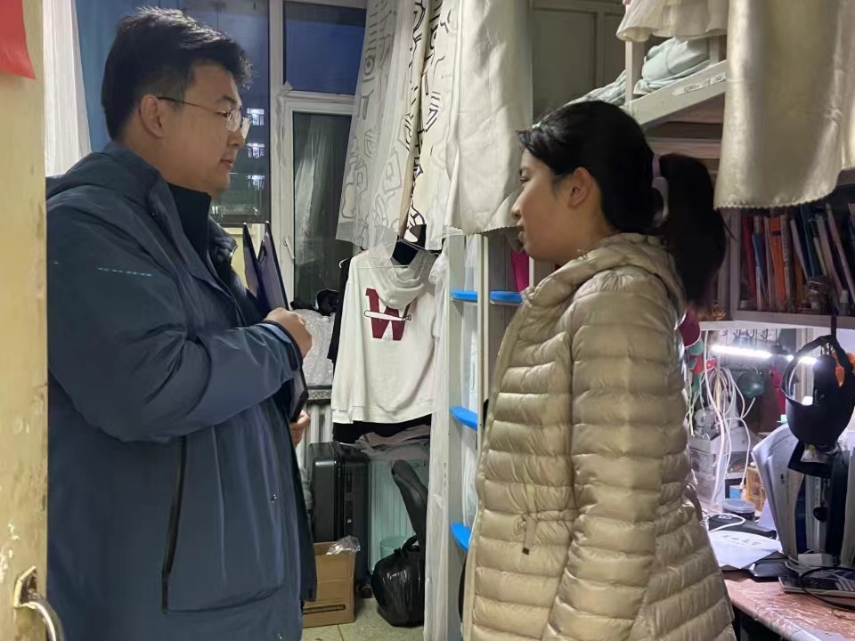 4月12日,2020级辅导员霍美汐老师对吉林大学朝阳校区五公寓、七公寓42间寝室进行检查,提醒同学们注意寝室卫生,了解同学们毕业去向等情况,强调寝室安全。