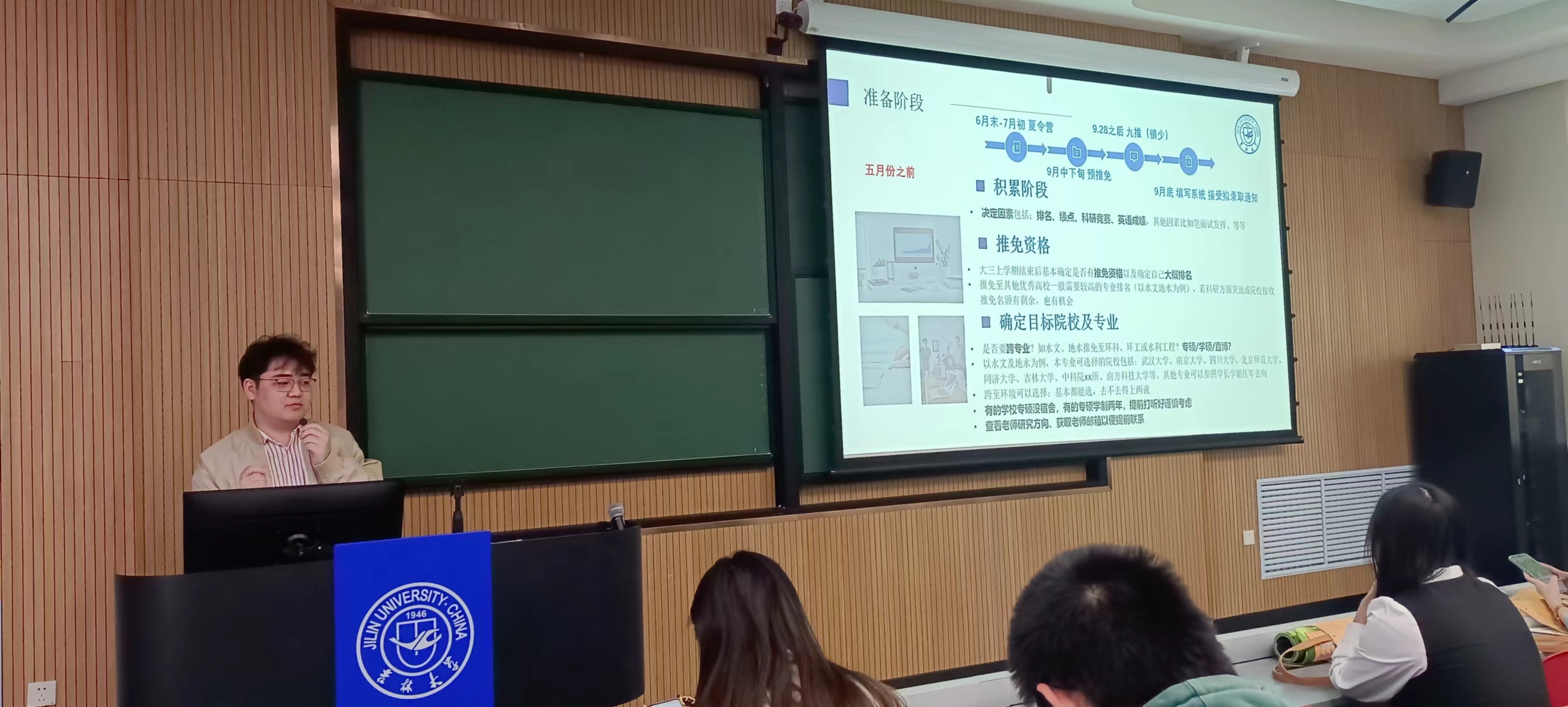 本次活动主讲人为四名2024年优秀应届毕业生。水文与水资源工作专业韩采奕同学在2024年黑龙江省定向选调考试中笔试、面试均列第一,成功上岸黑龙江省大庆市水务局;地下水科学与工程专业程迟吉太,于2023年成功推免至南京大学地球科学与工程学院;环境科学专业赵雨欣2024考研分数417分,为我院环境科学专业笔试第一名,现已通过面试;地下水科学与工程专业孙寿骏2024年考研分数336分,现已通过中国地质科学院面试。