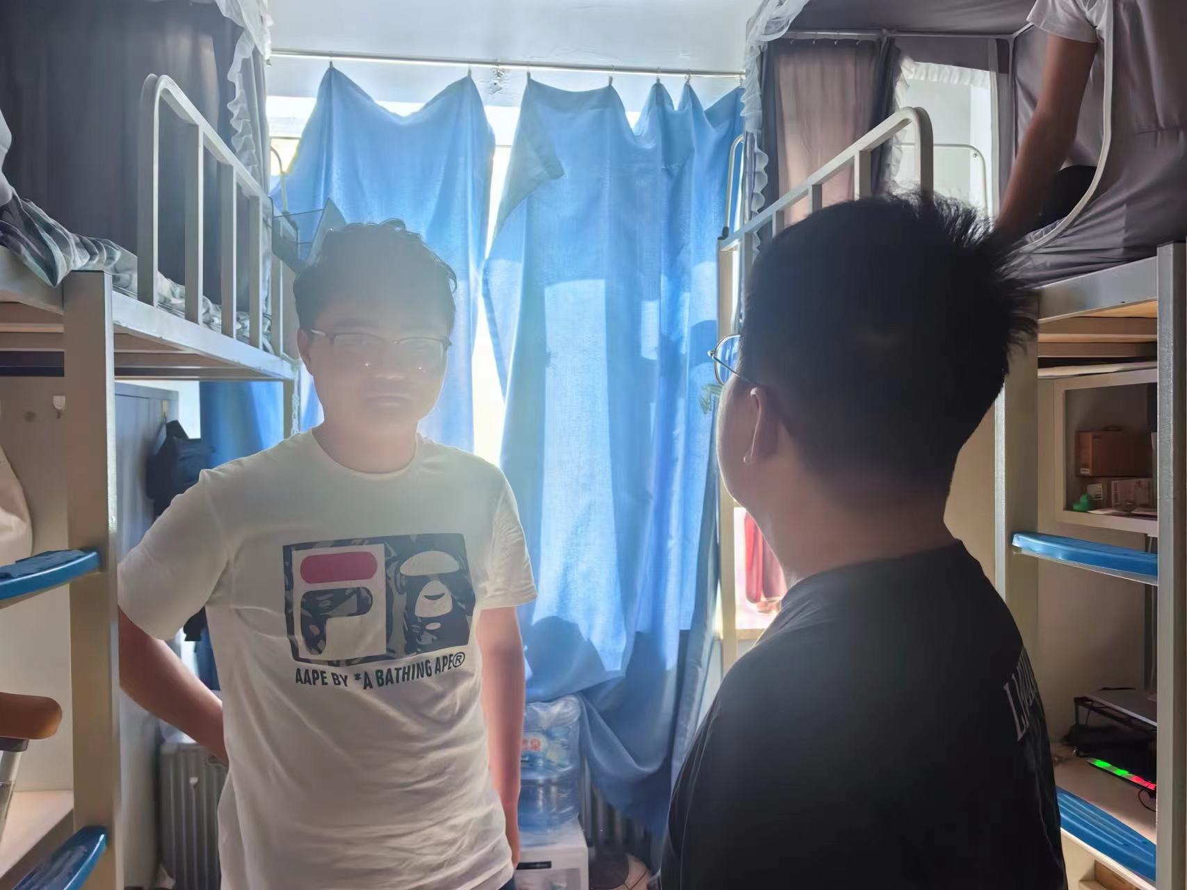 9月6日,2023级辅导员姜岳彤老师进入南苑一公寓学生寝室,重点检查寝室卫生,提醒卫生情况较差的寝室即使打扫,总体卫生情况良好。同日,姜老师来到《概率论与数理统计》课堂抽查出勤情况,本次课程共1人请假,2人迟到,其余同学均按时到课。