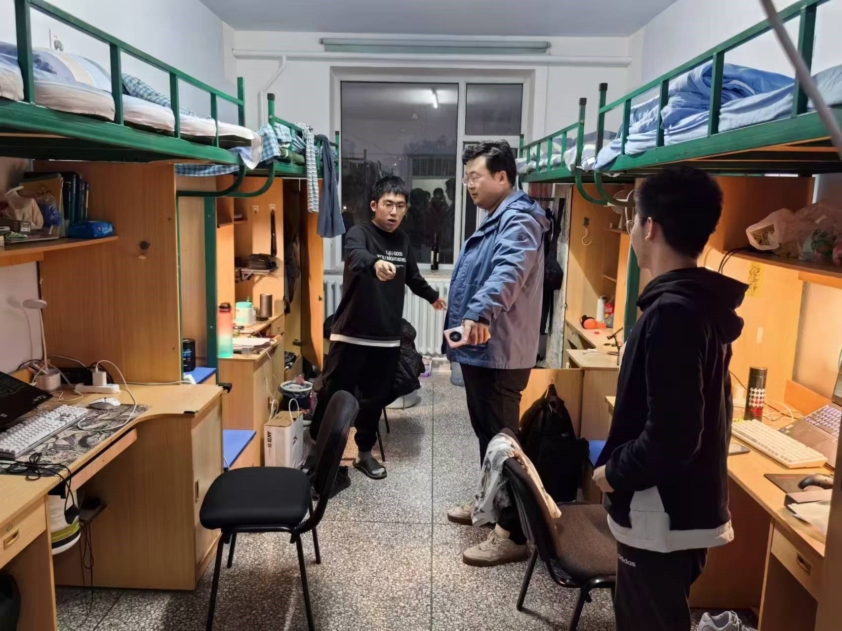 10月15日,2023级辅导员姜岳彤老师进入《地球科学概论》课,重点检查前排就座情况,本科课程共2人迟到,1人请假。10月17日,姜老师进入中心校区南苑一公寓寝室,检查宿舍卫生情况,并了解寝室温度,记录并上报寝室低温情况。