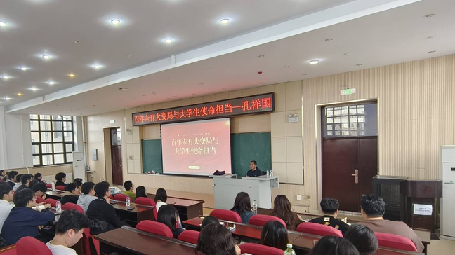 随后,为面对世界百年难有的时代大变局,孔老师表示,青年学生应该正确认识这一历史机遇,坚定不移推动构建人类命运共同体。青春因磨砺而出彩,人生因奋斗而升华。当代大学生应看清变局、勇于担当,积极响应构建人类命运共同体的倡导,以开放包容的胸襟,彰显大国青年的风采。