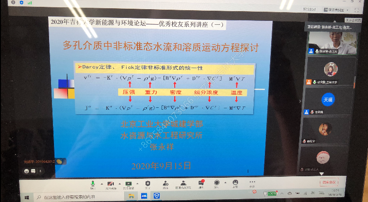 为搭建优秀校友和学院师生的交流桥梁,发挥优秀校友在人才培养中的思想引领、人生导航和专业导学作用,bat365官网登录入口于20209-12月期间,通过腾讯会议线上平台成功举办了本年度优秀校友系列讲座系列活动。本次活动每月开讲2次,共开展了8场系列讲座,分别由北京工业大学张永祥教授、清华大学王洪涛教授、中国石油大学曾溅辉教授、清华大学李广贺教授、黑龙江大学井立强教授、生态环境部环境规划院严刚副院长、广州大学胡春教授、河海大学束龙仓教授主讲,由许天福院长和院长助理张文静教授主持。