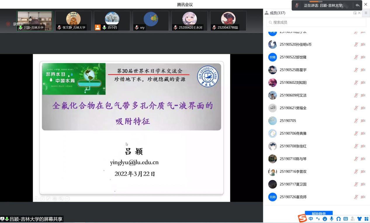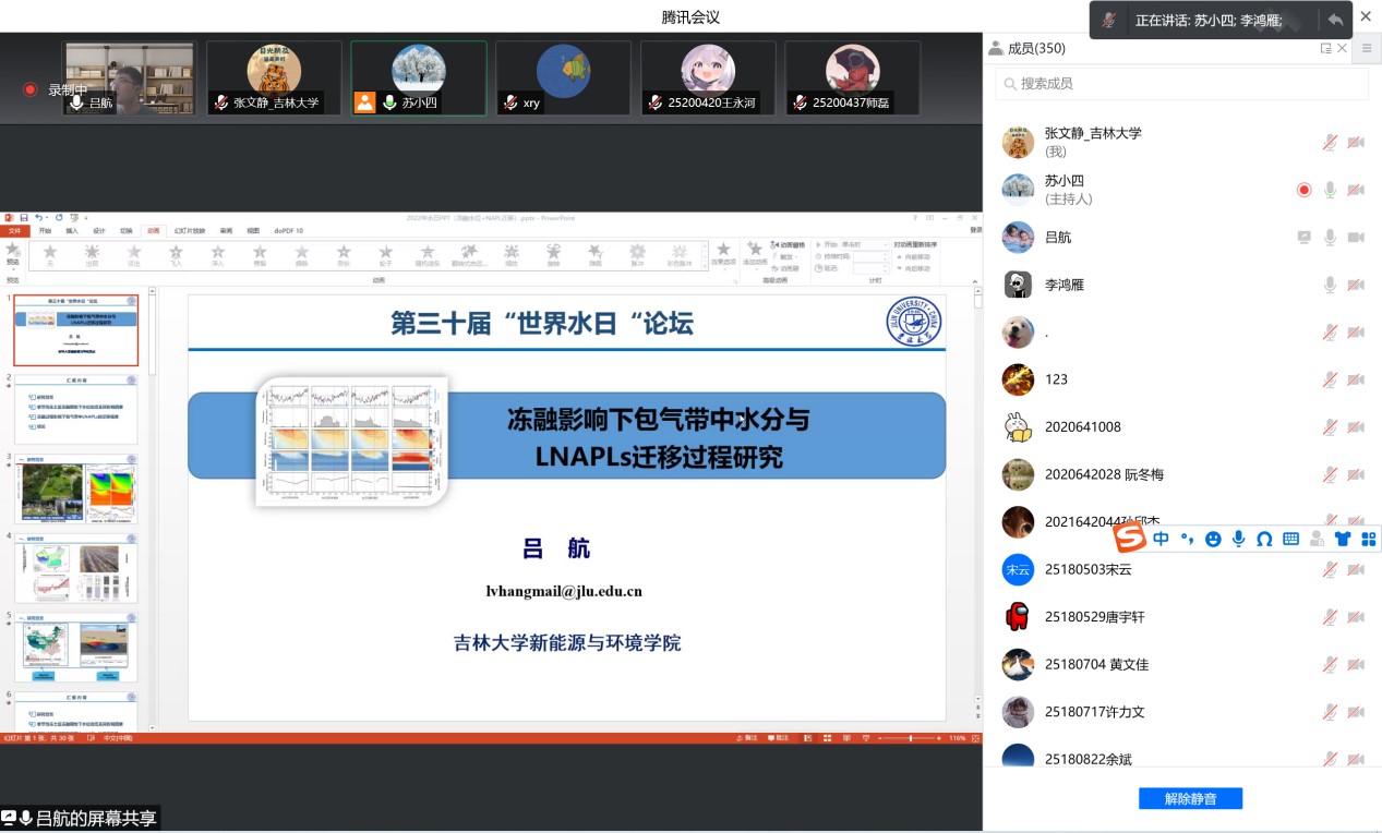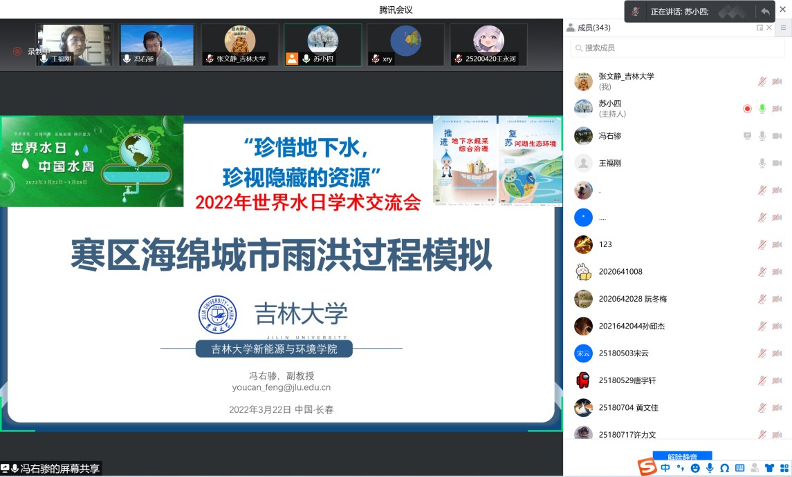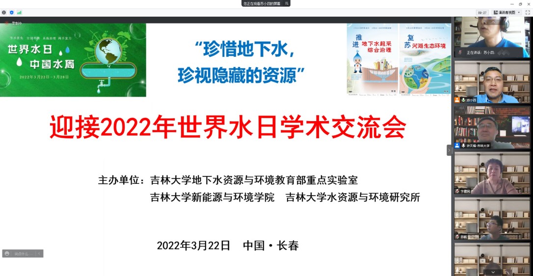 为深入落实习近平总书记节水优先、空间均衡、系统治理、两手发力治水思路,共同探讨地下水保护与利用的平衡之道,322日下午bat365官网登录入口、水资源与环境研究所与地下水资源与环境教育部重点实验室共同组织召开了迎接2022年世界水日学术交流会。会议由水资源与环境研究所所长苏小四教授主持,学院领导、相关教师和研究生、本科生同学350余人在线参加了此次学术交流。