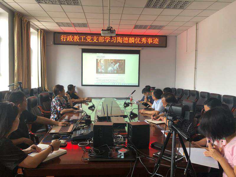 2020年8月26日下午,bat365官网登录入口行政党支部党日主题活动组织支部党员集中学习全国优秀教师陶德麟。我院党委书记汪祥松同志首先肯定了在疫情防控期间各位行政服务人员所作出的努力与贡献,并对支部党员同志新学期的工作要求提出几点希望,希望支部党员同志在新学期起好模范带头作用,加强政治学习、民主监督,在服务师生的过程中注意意识形态的正确引导,遵守各项工作制度等。行政支部党支部书记温卓同志介绍了全国优秀教师陶德麟同志的简介,并组织集中学习观看陶德麟同志的生平纪录片。