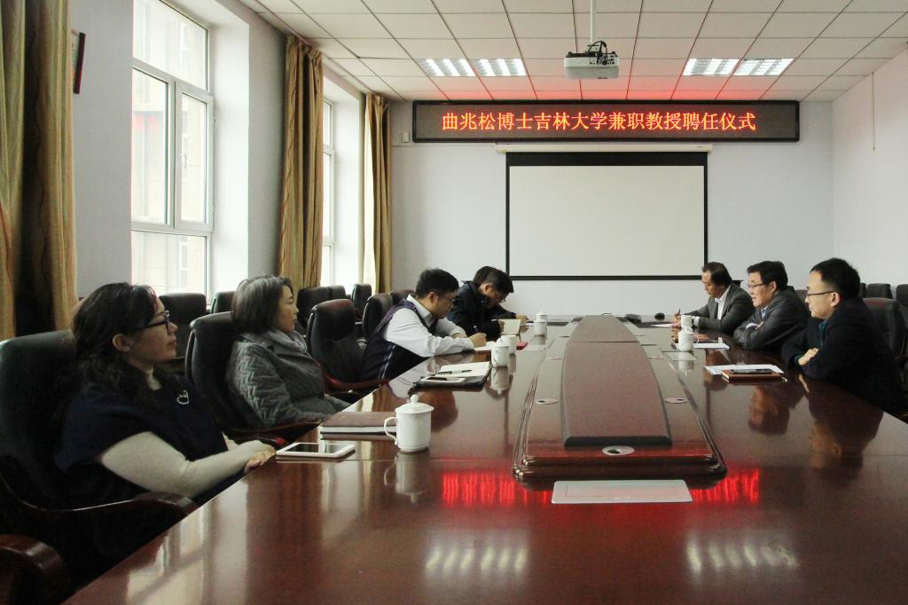 3月21日上午,bat365官网登录入口在北区理化楼260会议室举行了兼职教授聘任仪式,聘任北京尚水信息技术有限公司曲兆松博士为吉林大学兼职教授。学院院长许天福教授、党委书记汪祥松、地下水科学与工程系副主任李鸿雁、辛欣、方樟及部分老师参加了聘任仪式。聘任仪式由学院党委书记汪祥松主持。