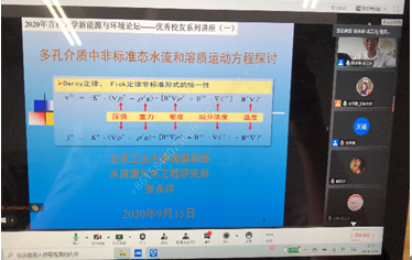 为搭建优秀校友和学院师生的交流桥梁,发挥优秀校友在人才培养中的思想引领、人生导航和专业导学作用,bat365官网登录入口于2020年9月-12月期间,通过腾讯会议线上平台成功举办了本年度“优秀校友系列讲座”系列活动。本次活动每月开讲2次,共开展了8场系列讲座,分别由北京工业大学张永祥教授、清华大学王洪涛教授、中国石油大学曾溅辉教授、清华大学李广贺教授、黑龙江大学井立强教授、生态环境部环境规划院严刚副院长、广州大学胡春教授、河海大学束龙仓教授主讲,由许天福院长和院长助理张文静教授主持。