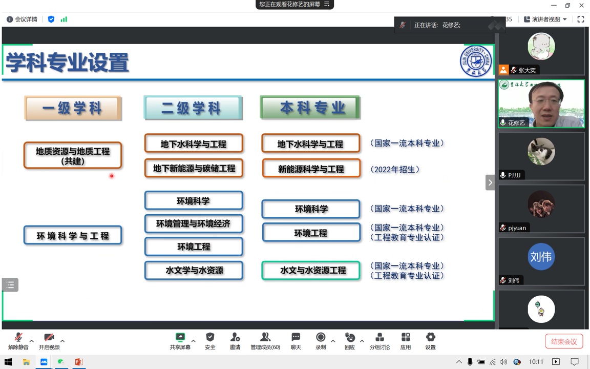 本次招生宣传通过远程网络进行,bat365官网登录入口副院长花修艺教授、环境工程系系主任张大奕教授组织进行了这次宣传工作。本次宣讲会汇聚了来自全国各地的有志于新能源与环境科学领域深造的优秀学子,为他们提供了了解学院学术项目和未来发展机会的宝贵机会。