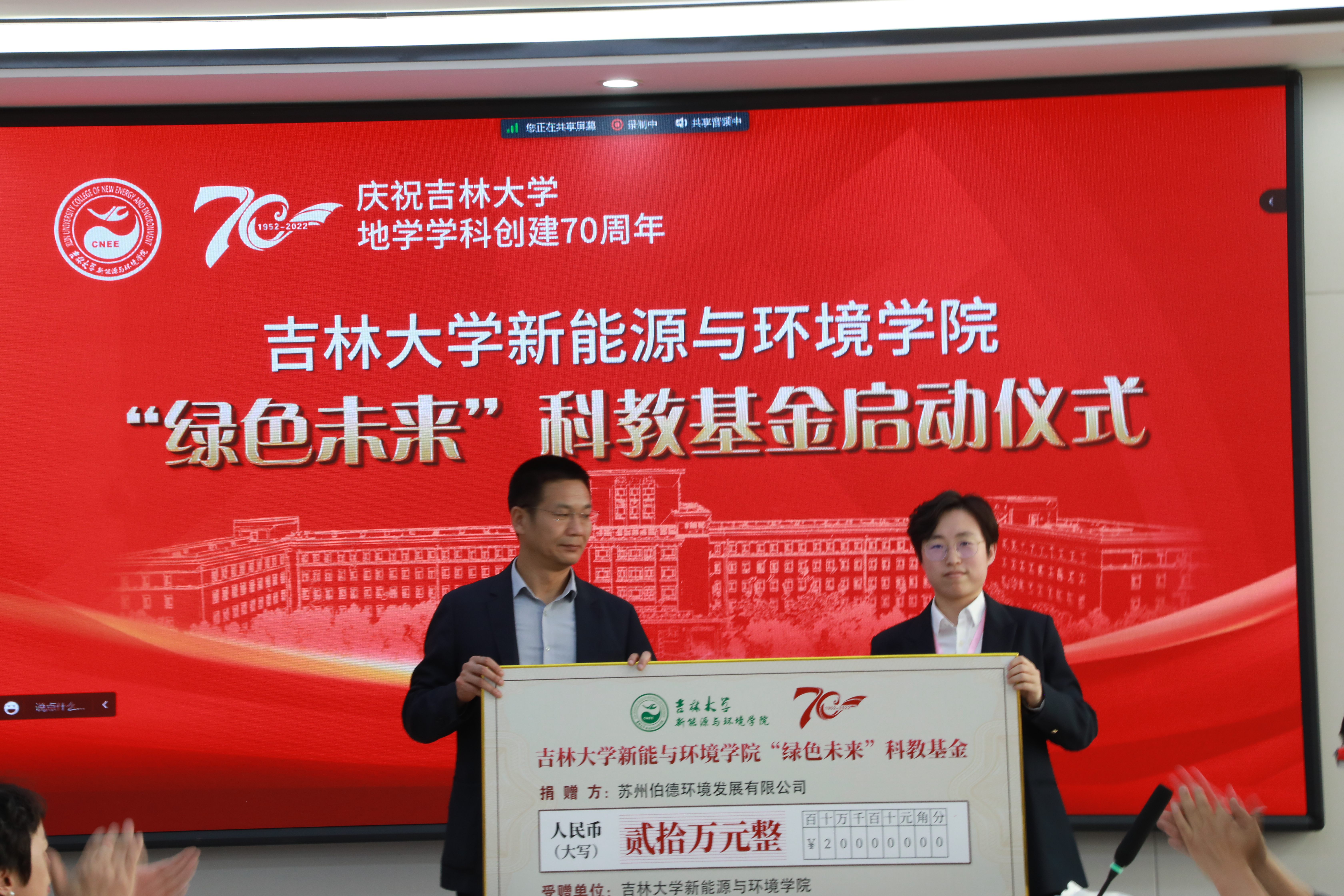 承办吉林大学地学学科创建70周年系列庆祝活动,设立“绿色未来”科教基金