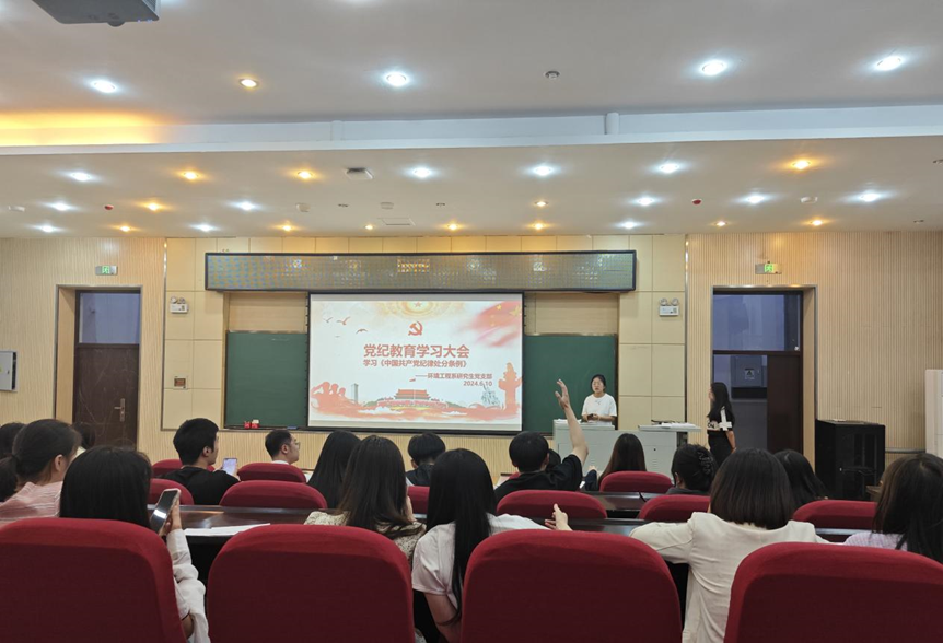 环境工程系研究生第二党支部书记房梓安带领支部党员集中学习《中国共产党纪律处分条例》政治纪律部分修订内容。经过集中学习,党员们都深刻意识到政治纪律和政治规矩是党最根本、最重要的纪律,遵守政治纪律和政治规矩是遵守党的全部纪律的基础。